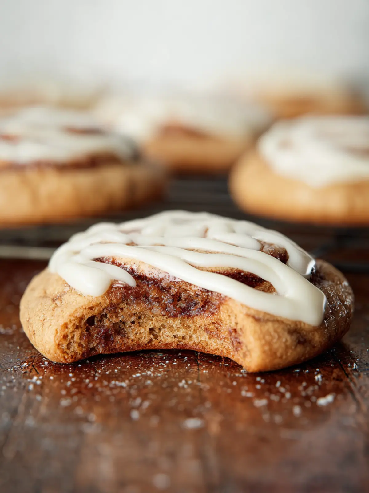 Delicious cinnamon roll cookies topped with cream cheese frosting.