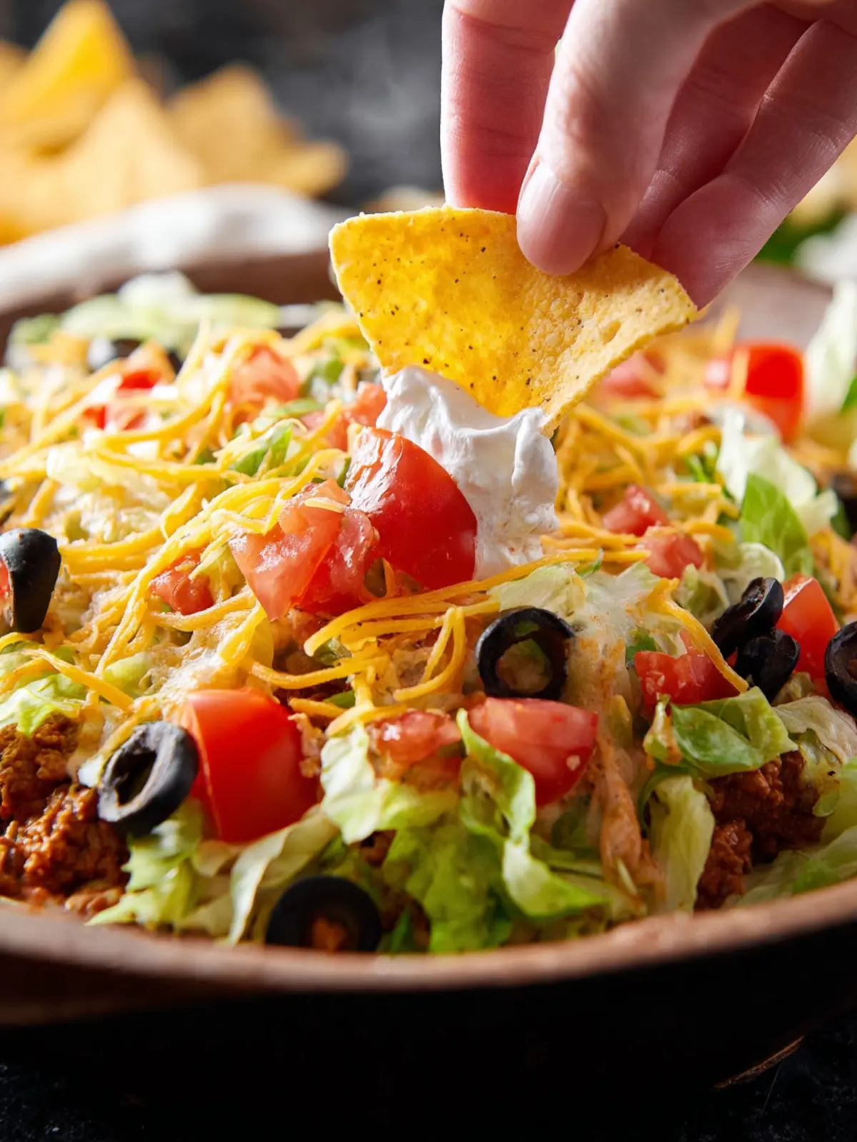 Whether it’s game night, a potluck, or a casual get-together, this taco dip is a surefire crowd-pleaser. Serve it alongside crispy tortilla chips or fresh veggies, and watch how it disappears in seconds. Trust me; your friends will be asking for the recipe long after the last scoop has been devoured!