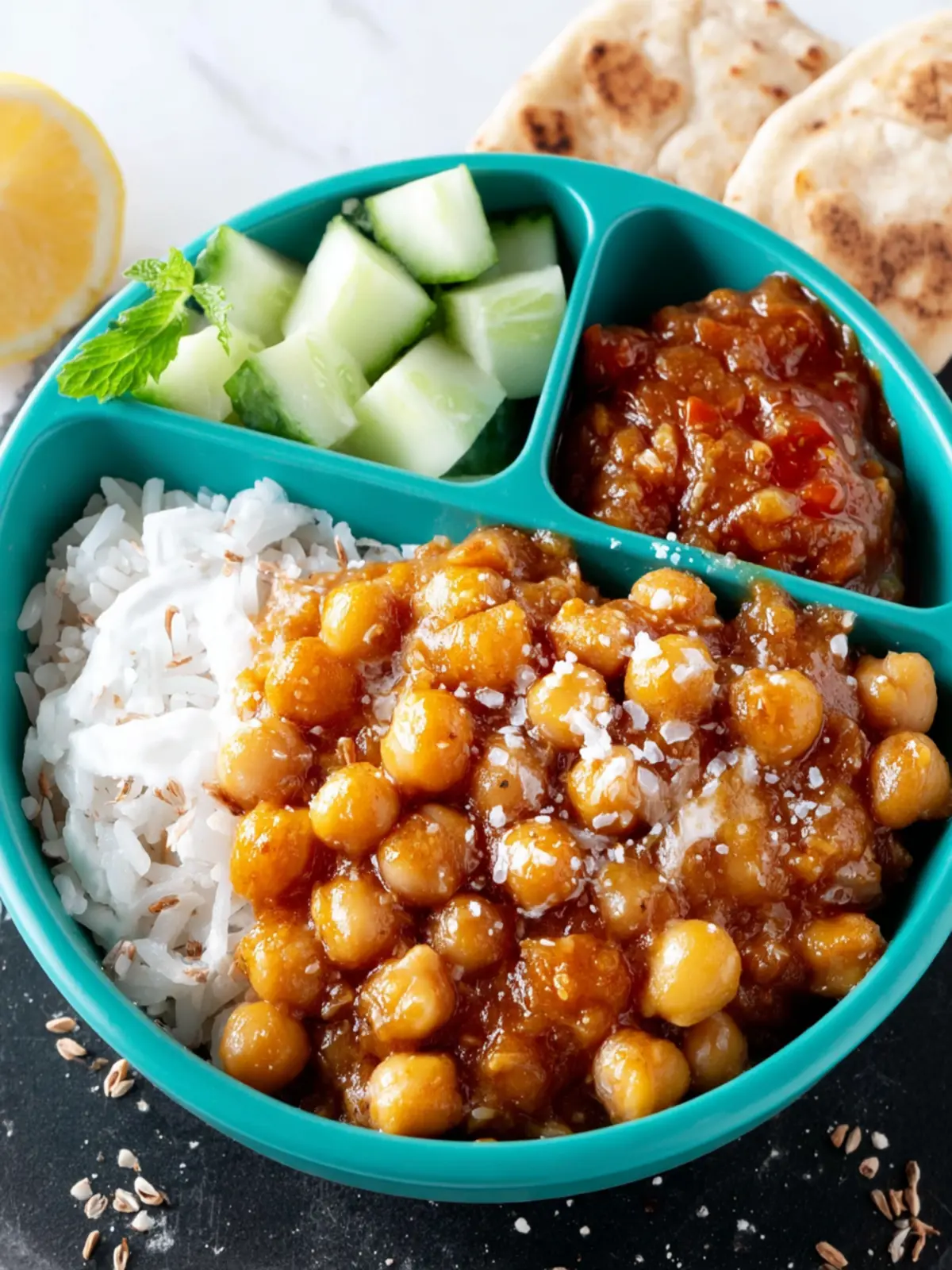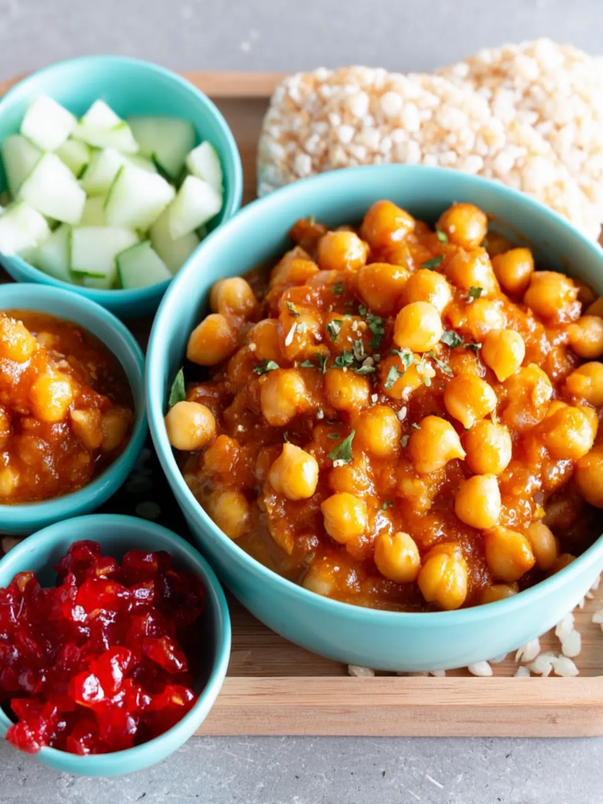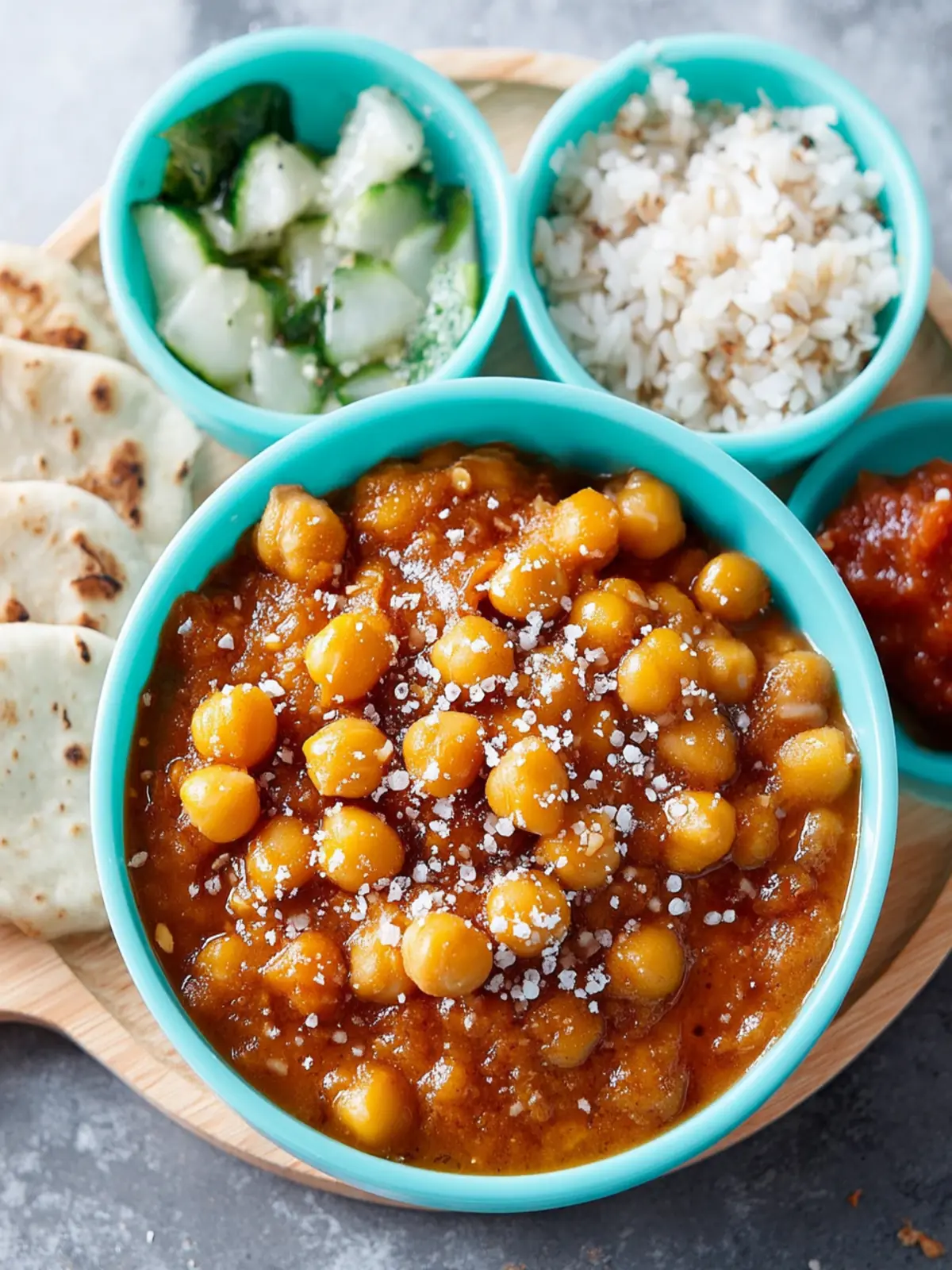 One of the easiest and most satisfying ways to serve your chickpeas is over a bed of fluffy basmati rice or protein-packed quinoa. The grains soak up the bold sauce, making every bite a delightful explosion of flavors.