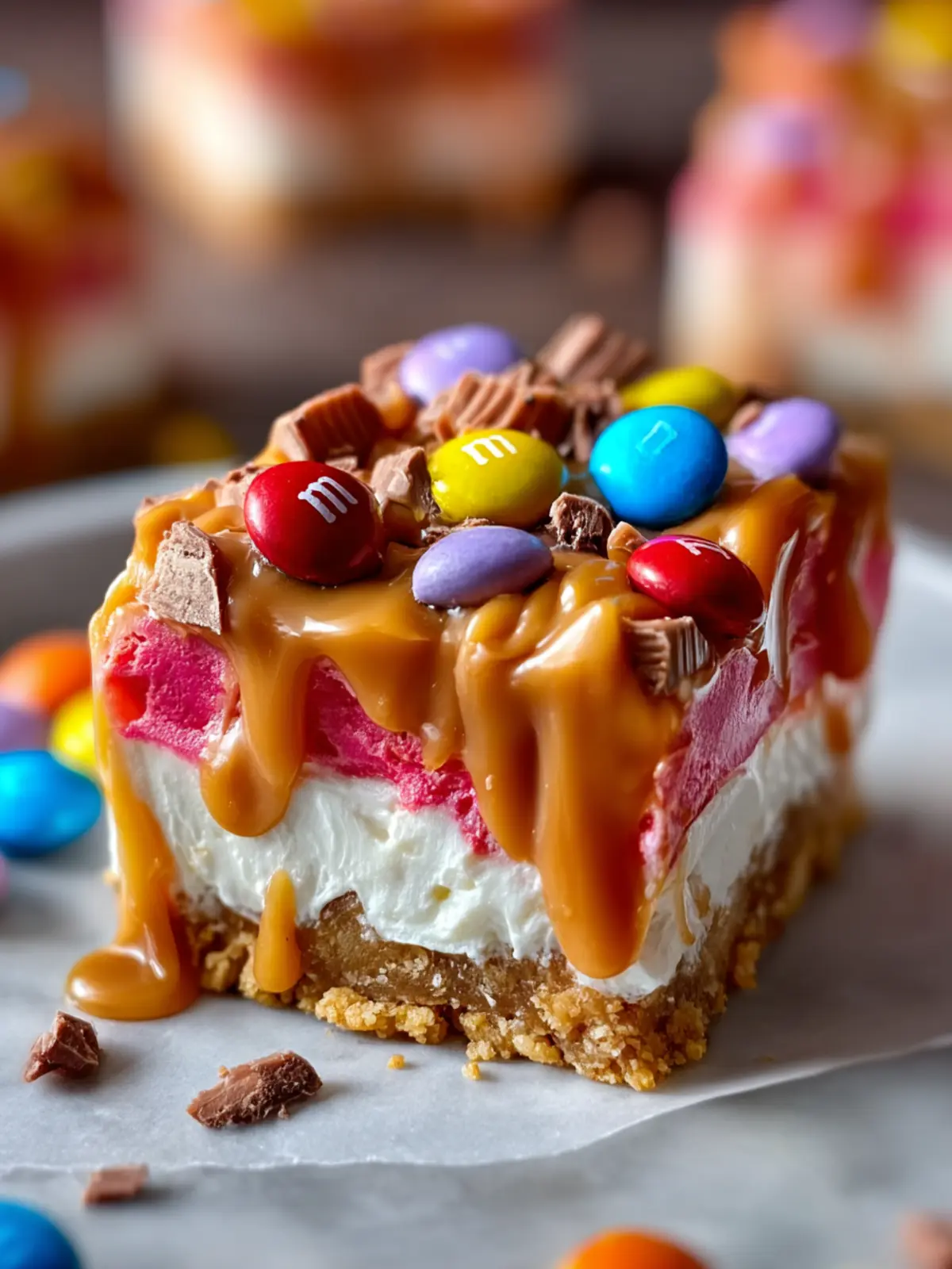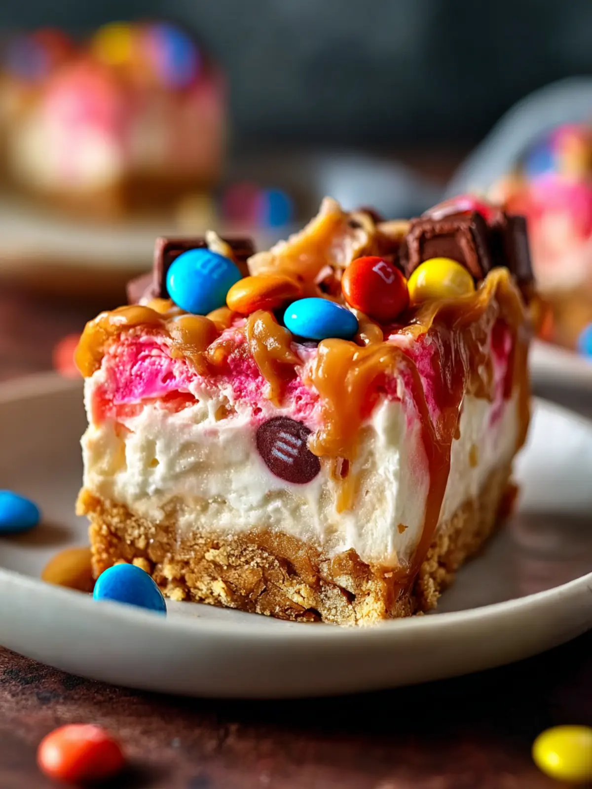 No-Bake M&M’s Caramel Cheesecake Bars: Easy Indulgent Delight