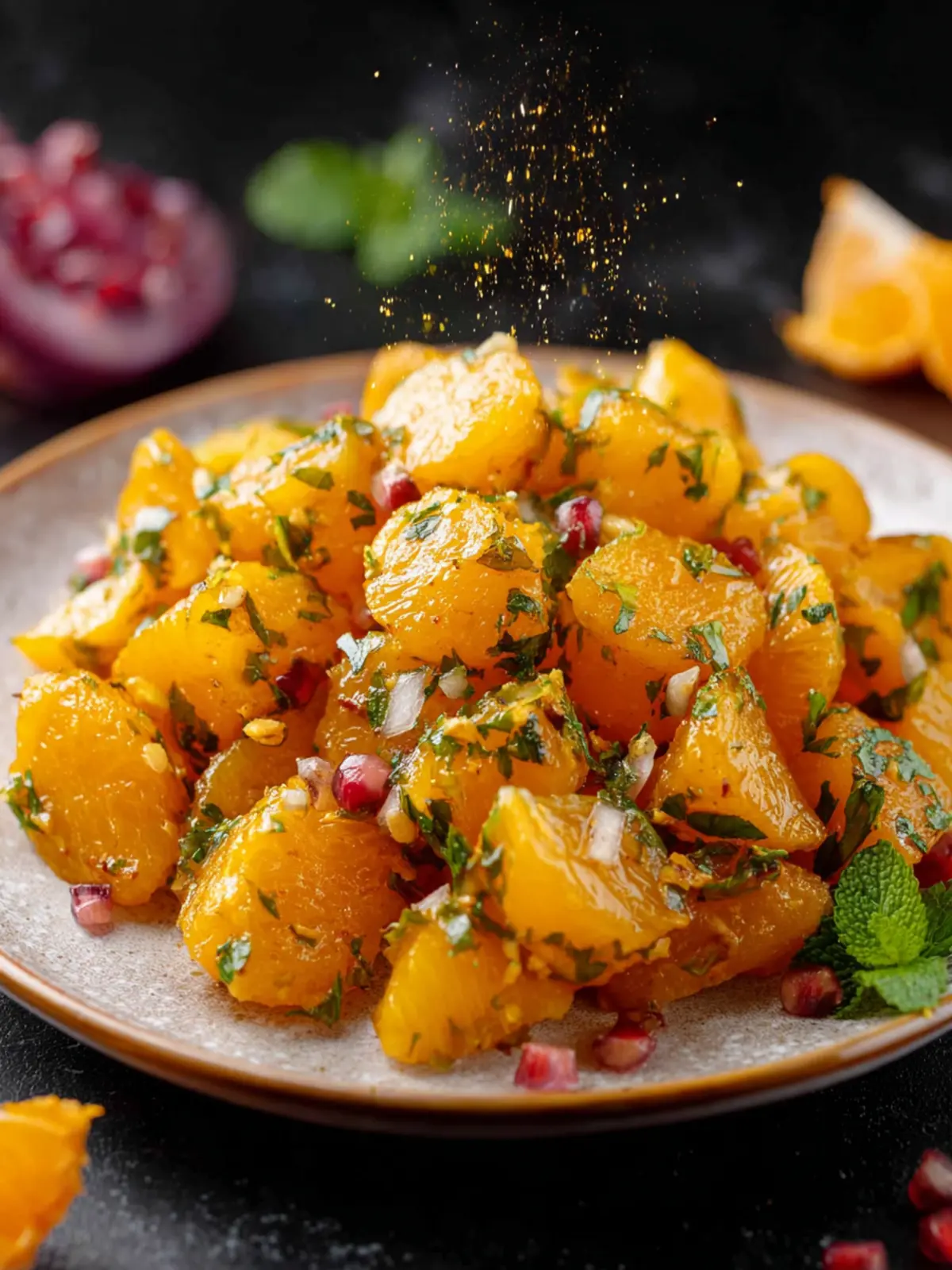 Spicy Adornment: To spice things up, consider adding a sprinkle of finely chopped green chilies or a dash of chili powder. The heat from the spices contrasts beautifully with the sweetness of the oranges.