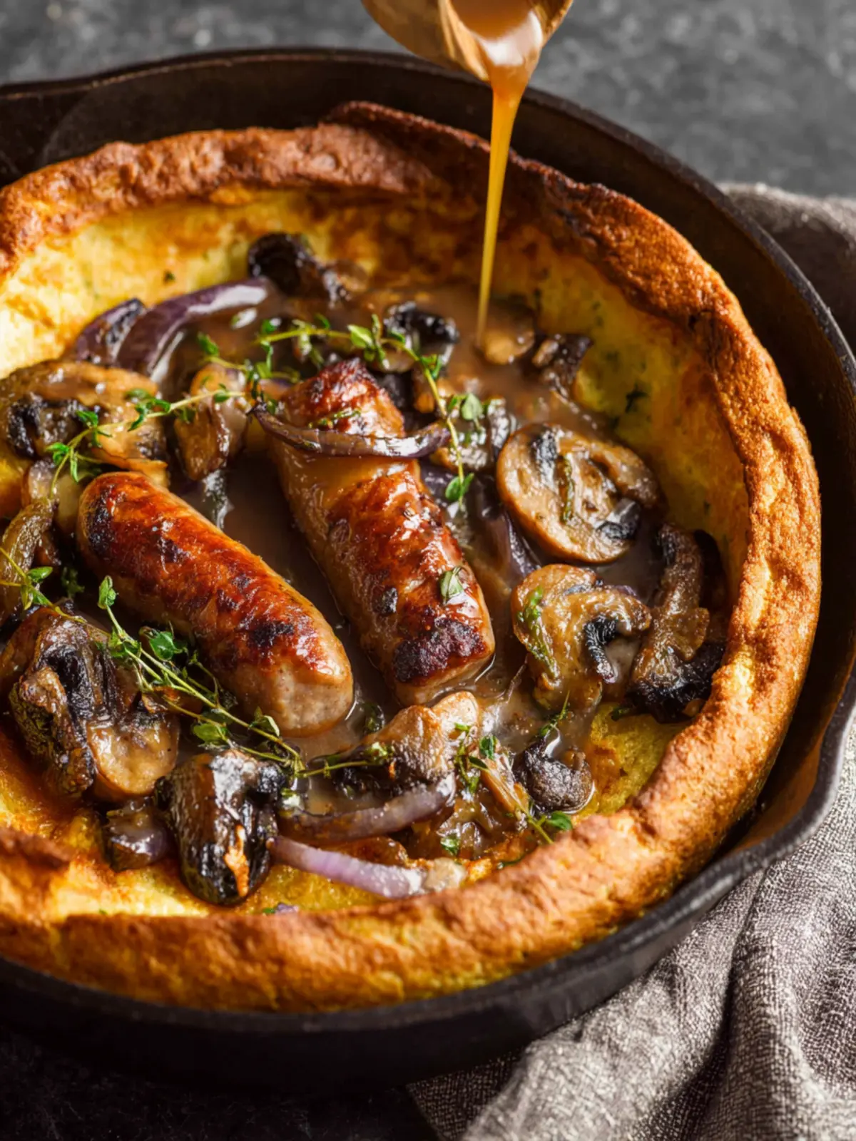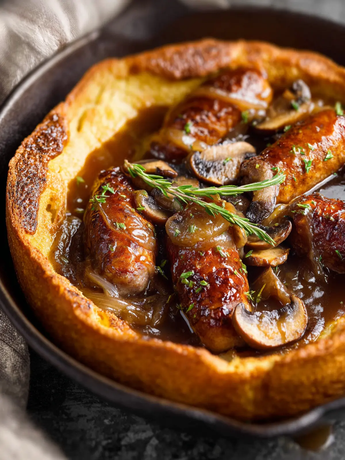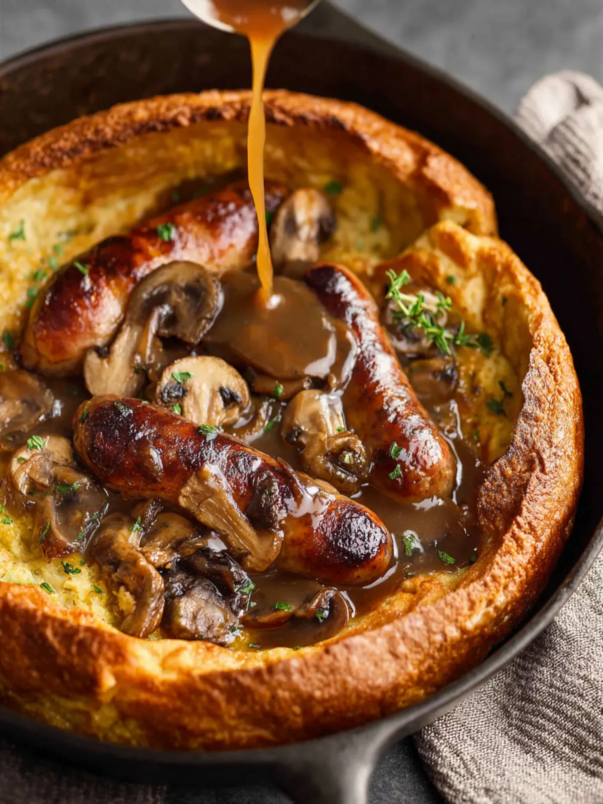 The cooking process takes roughly 30 minutes. You’ll roast your sausages until golden, then pour your batter over them for that delightful puff. Don’t forget to make your gravy during this time; it adds an irresistible touch.