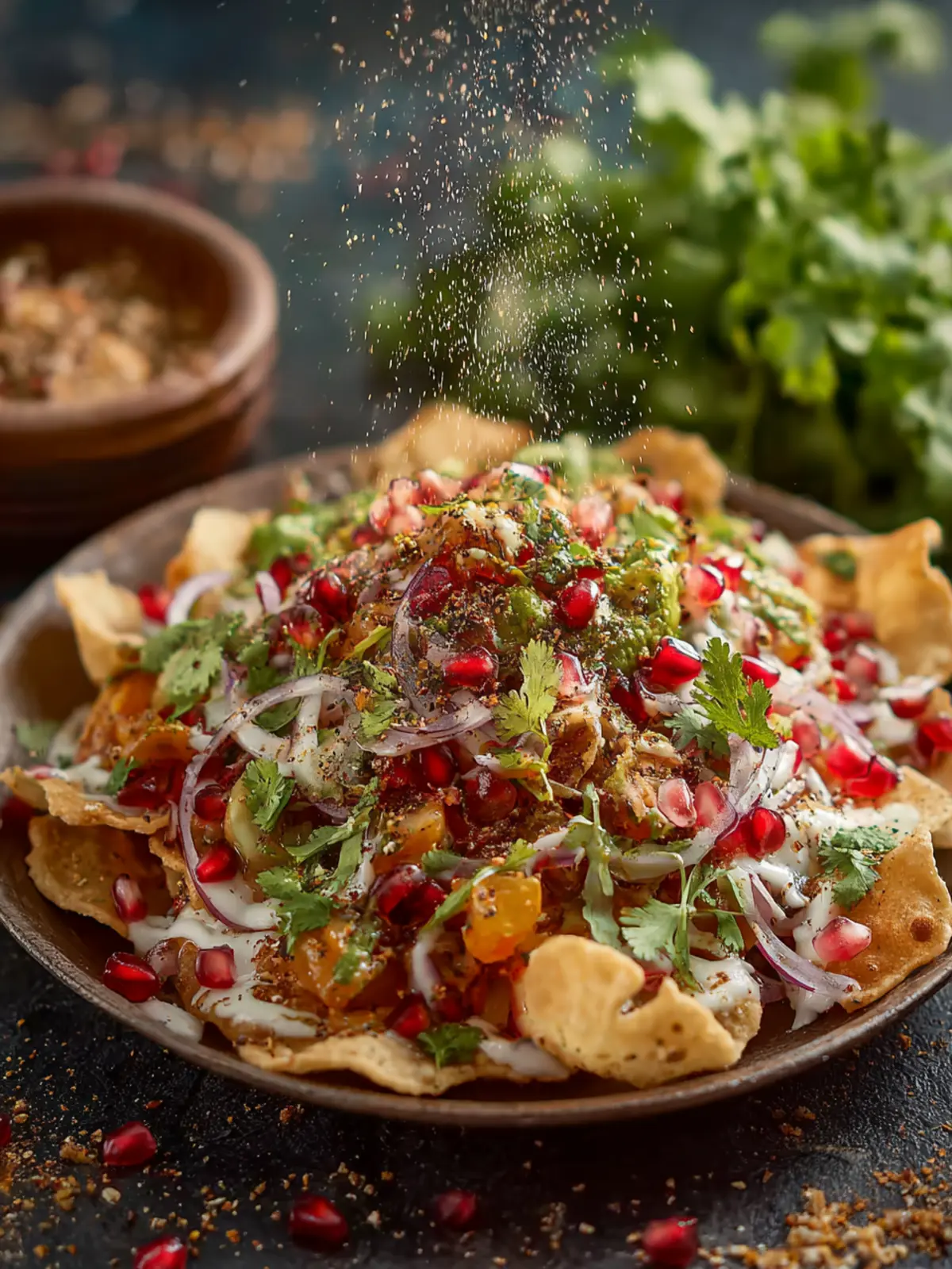 Dressing: Drizzle the tamarind chutney and mint-cilantro chutney generously over the papdis. A final sprinkle of chaat masala adds a beautiful color and flavor boost.