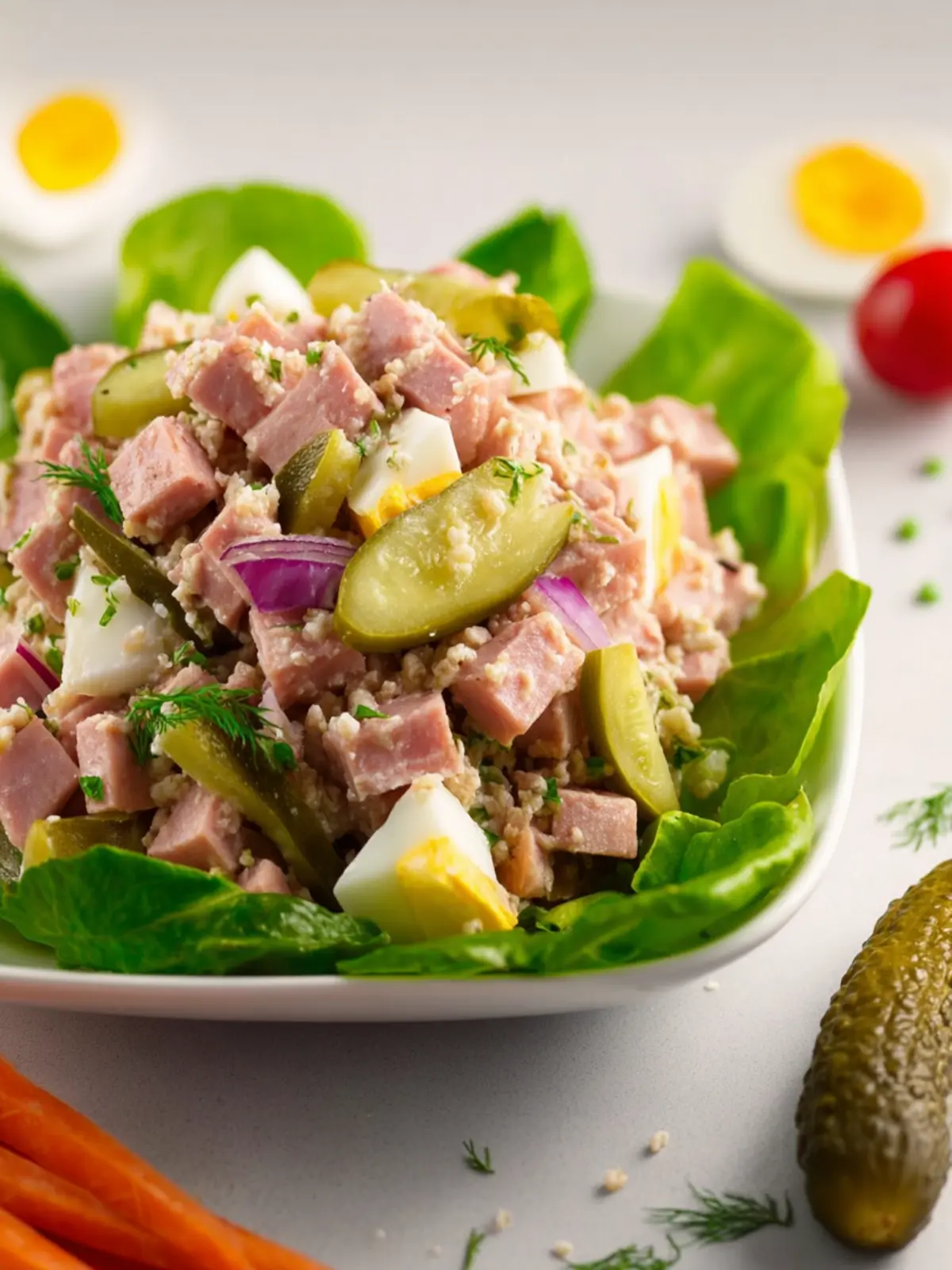 A delicious and easy-to-make ham salad that combines cooked ham with fresh ingredients for a tasty dish.