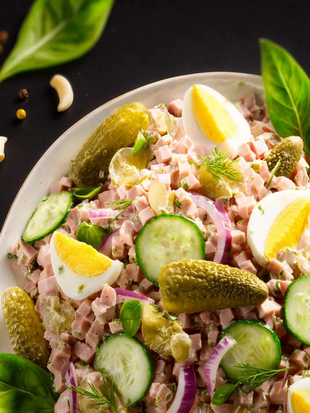 • Pickles: For that signature tang, dill pickles are a must! Their crunch adds texture, while their acidity balances the creaminess of the salad. You can chop them finely for a subtle kick or leave them in larger pieces for more texture.