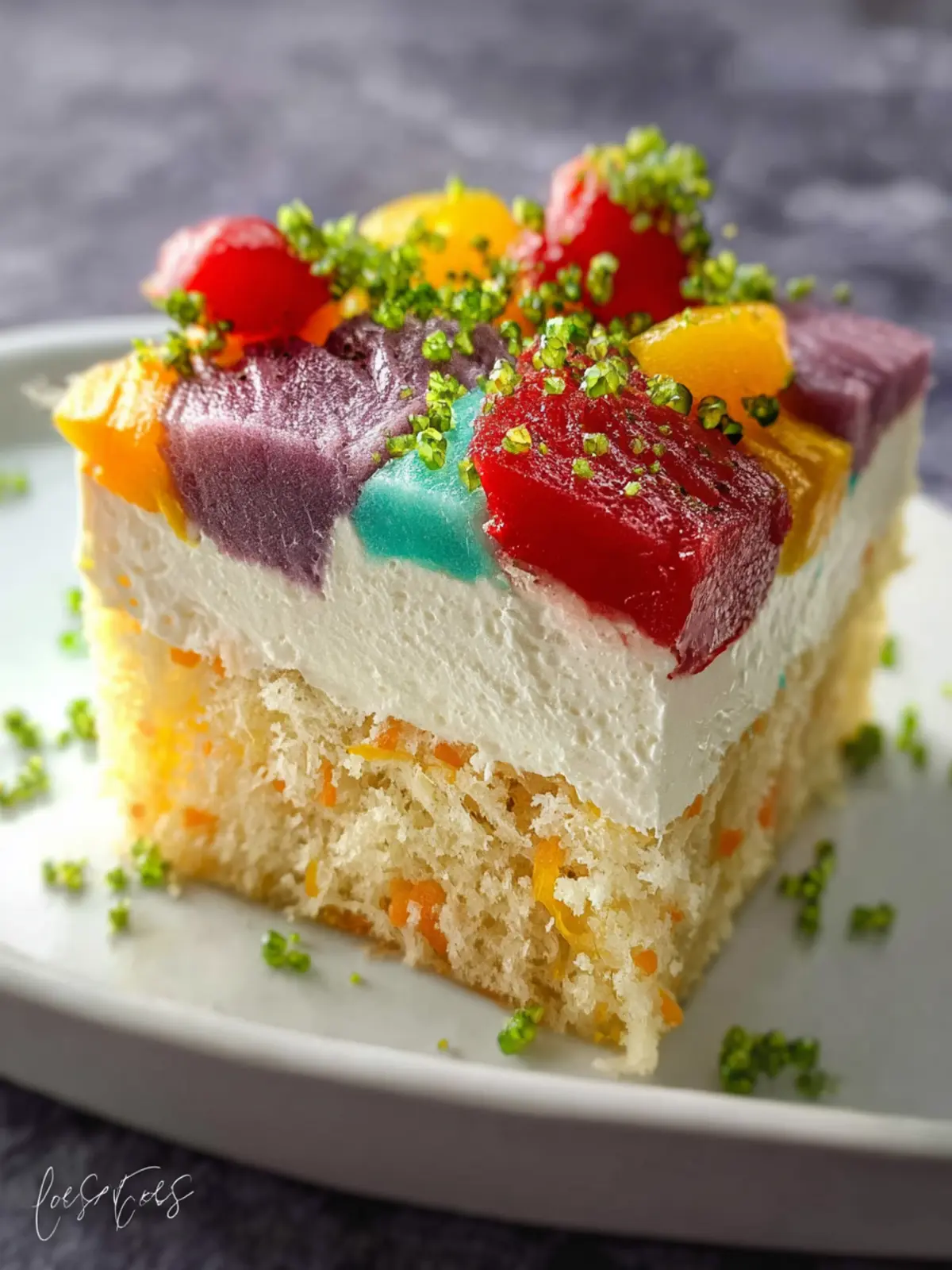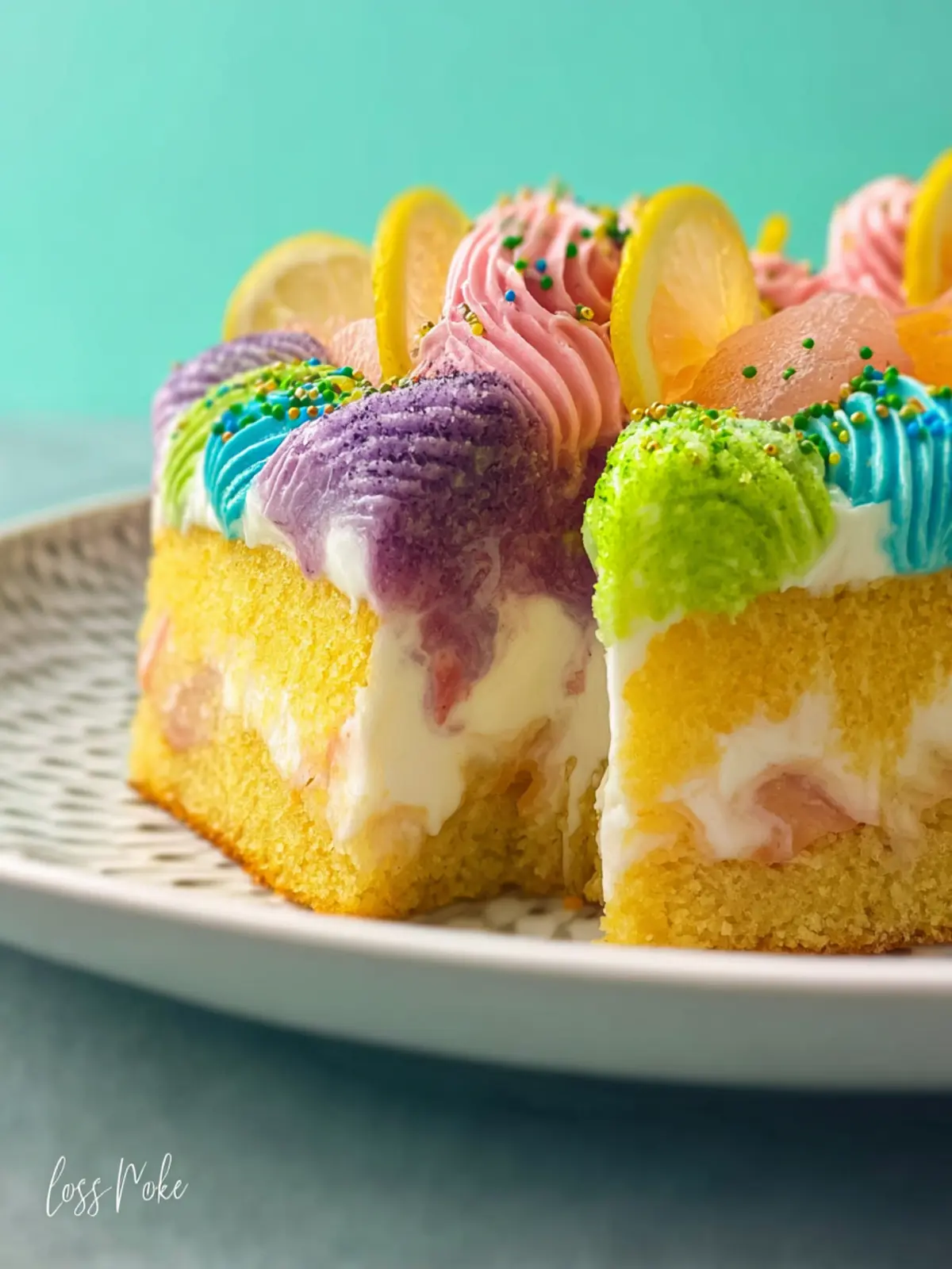 Visual Appeal: The aesthetic of this cake is equally enchanting. The poke holes filled with colorful jello or syrup create a stunning marbled effect that’s impressive enough to be the centerpiece at any gathering.